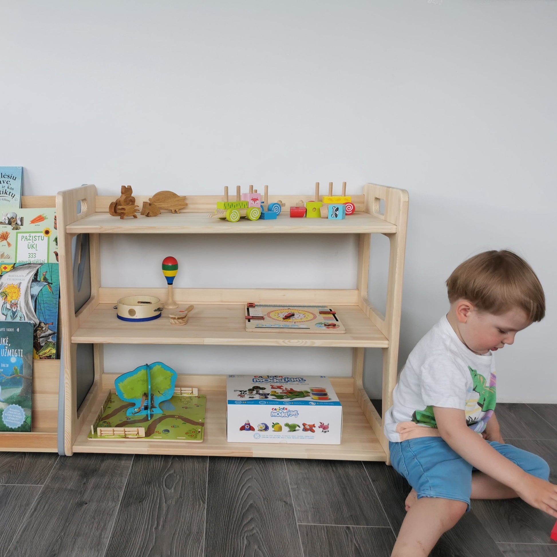 Fördert das Lernen durch praktisches Erkunden mit leicht zugänglichem Spielzeug. Handgefertigt aus natürlichem, hochwertigem Holz.