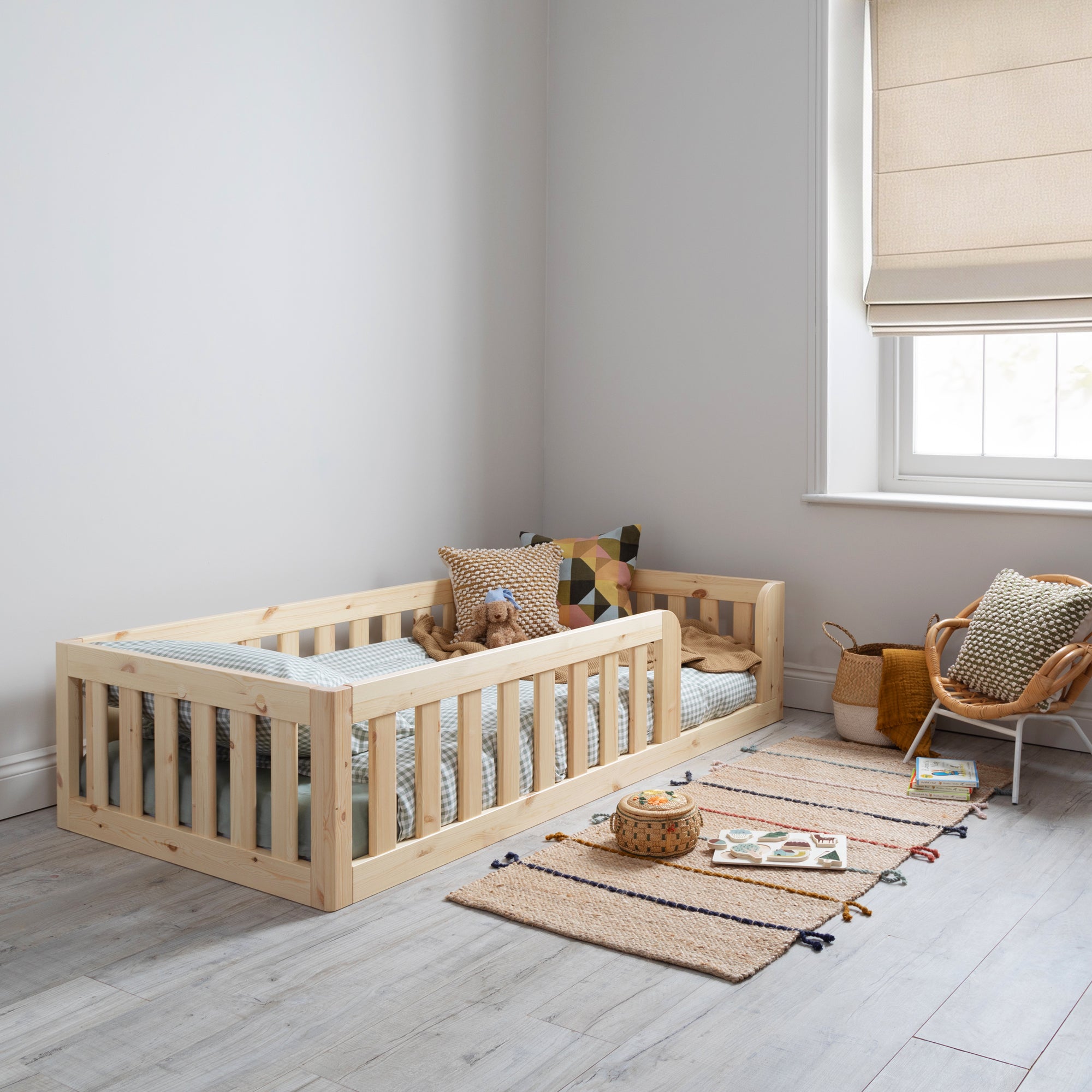 Ein flexibles, kleinkindsicheres Bett, von Eltern für Sicherheit und Unabhängigkeit entworfen.